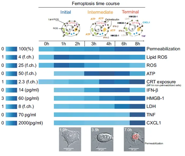 • Our study defines three stages of ferroptosis (initial, intermediate, terminal) and demonstrates that early ferroptotic cancer cells impair dendritic cell (DC) maturation, uptake, and antigen cross-presentation.