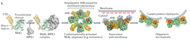• In addition to pore formation, the membrane protein NINJ1 senses cellular swelling (oncosis) and induces catastrophic plasma membrane rupture during the terminal phase of cell death, leading to the release of intracellular contents.