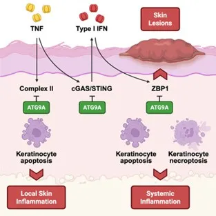 - Priem D, Huyghe J, Gilbert B, Verdonck S, Delanghe T, Verstraeten B, Hoste E, Vandenabeele P, Maelfait J, van Loo G, Bertrand MJM. ATG9A-mediated autophagy prevents inflammatory skin disease by limiting TNFR1-driven STING activation and ZBP1-dependent cell death. Immunity. 2025 Dec 9;58(12):2972-2988.e6.